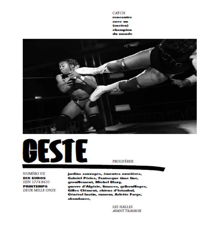 La revue Geste vous invite au Monte-en-l’air le dimanche 8 mai 2011 à 17 heures pour le lancement de son n°7 avec une présentation de la revue et des lectures autour du dossier « Les Halles avant travaux ».
