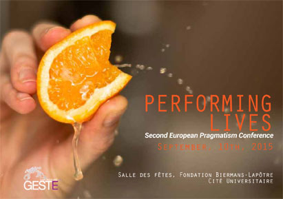 Le Second European Pragmatism Conference invite le Laboratoire du geste à prendre part au congrès. A cette occasion, le Laboratoire a constitué un groupe de chercheurs, artistes, étudiants pour élaborer un événement artistique et performatif pendant la soirée de cocktail du congrès, intitulé PERFORMING LIVES.